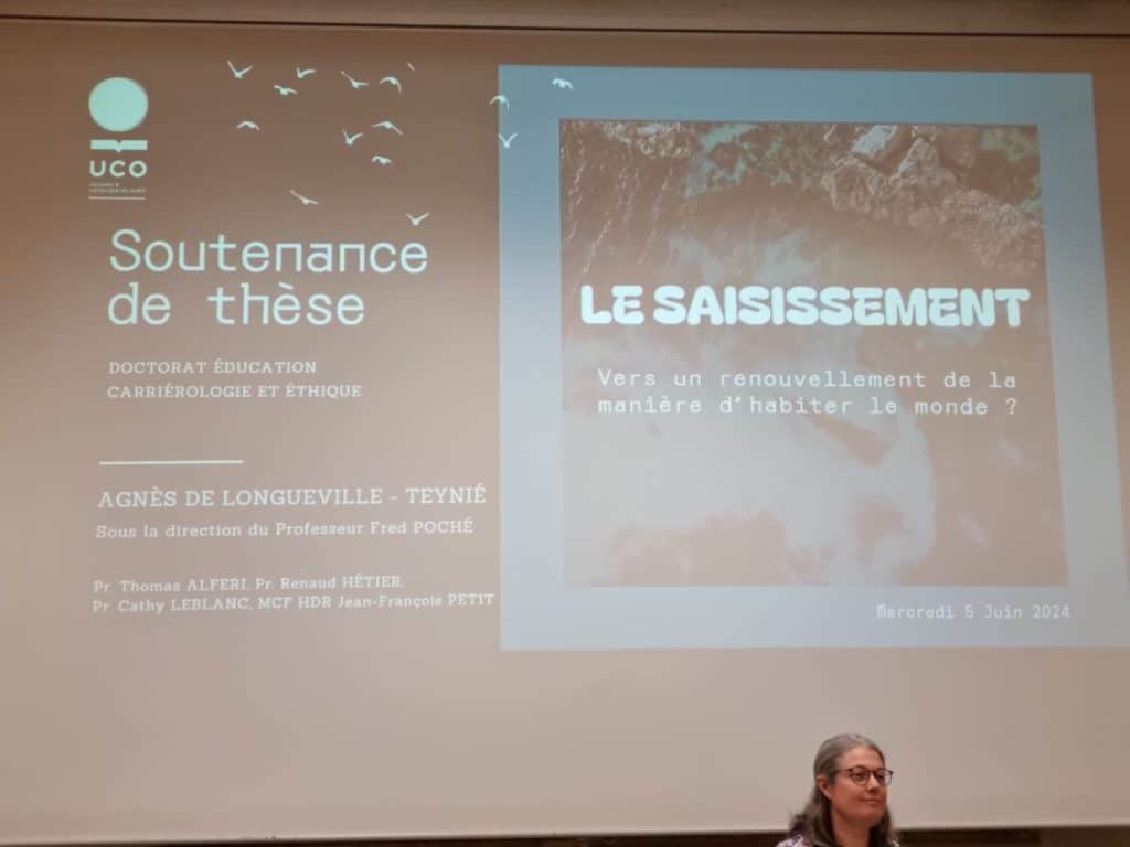 Avec grand plaisir ! J’ai effectivement soutenu une thèse de Doctorat en Éducation, Carriérologie et Éthique, à l’Université Catholique de l’Ouest. J’ai vécu une aventure passionnante pendant cinq ans, au sein d’une cohorte de doctorants, qui sont tous des professionnels en activité : quelle richesse dans nos partages d’expérience et de pensée !